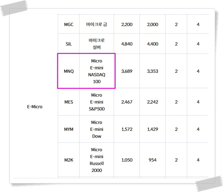 이를 보완하기 위해 출시된 ‘나스닥 마이크로’ 상품 역시 최소 $3,689 이상의 예치금이 있어야 합니다.