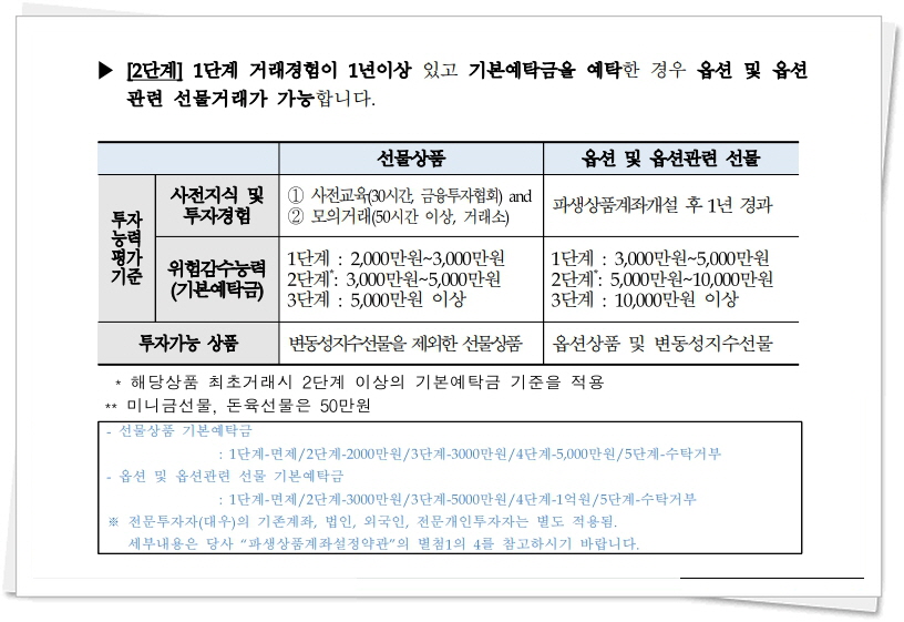 국내 선물 거래를 시작하려면 의무적인 사전 교육 이수, 모의 투자 참여, 그리고 상당한 규모의 기본 예탁금이 요구됩니다.