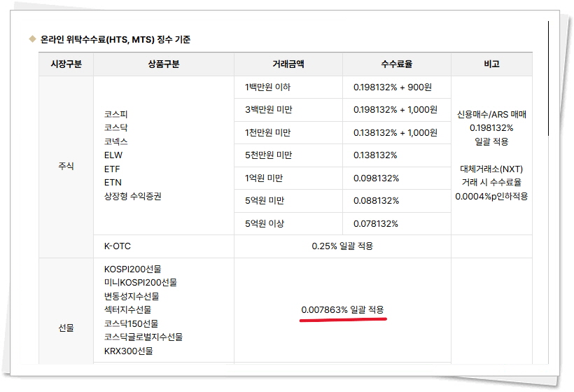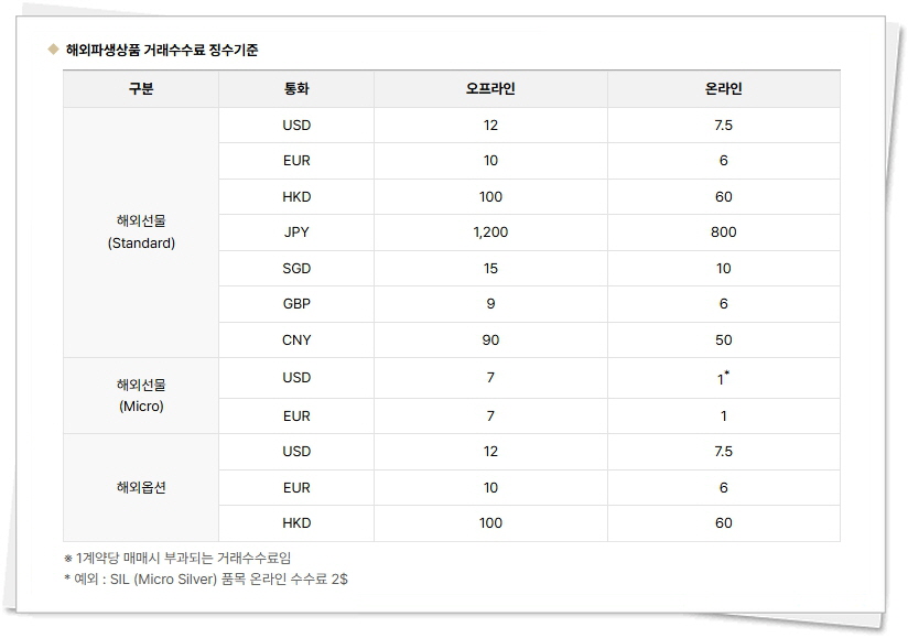 메리츠증권 해외선물 수수료 입니다.